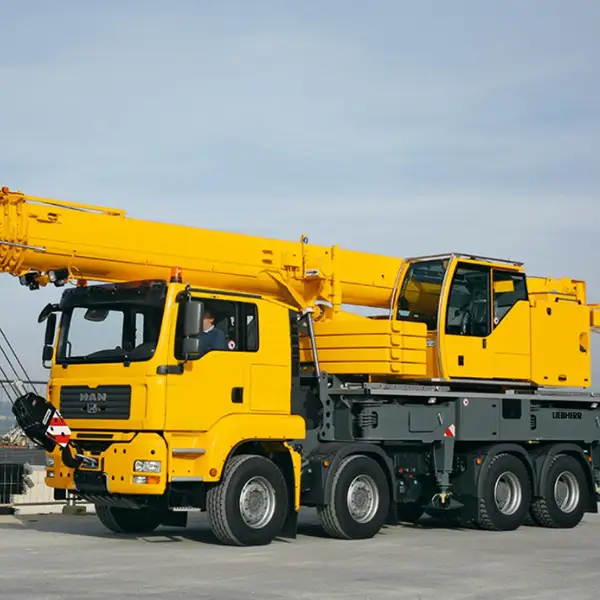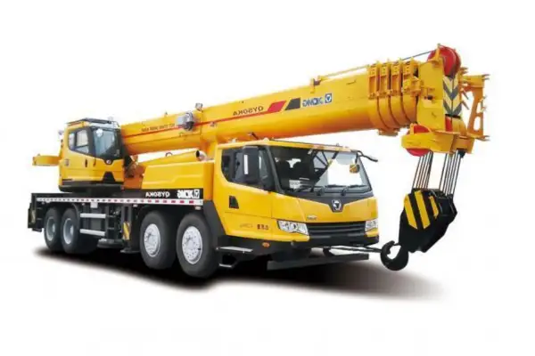 A truck-mounted crane is a type of mobile crane mounted on a truck chassis, designed for heavy lifting equipment tasks in construction. It uses a hydraulic system to operate a telescopic boom, which lifts and positions heavy materials like steel beams or concrete panels. The crane’s mobility allows it to travel to job sites, where outriggers provide stability during lifts, making it ideal for versatile construction crane applications.